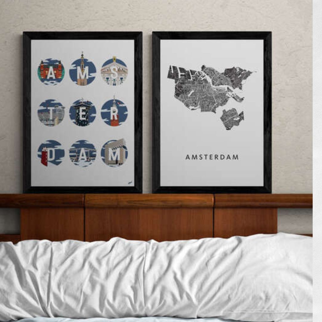 Deze poster kun je alleen ophangen of op een speelse manier combineren met andere posters van Amsterdam. Je zou hierbij kunnen denken aan een kaart van Amsterdam of een mooie foto. Kies je voor de Amsterdam poster zonder tekst dan kun je deze ook goed combineren met de Amsterdam Letter Print.