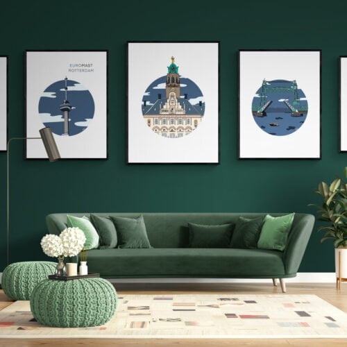 Deze Stadhuis Rotterdam art print kun je alleen ophangen of speels combineren met andere art prints van Rotterdam. Stel zo je eigen unieke Rotterdam muur samen, met kunst van iconische plekken die voor jou een speciale betekenis hebben. Bij het zien van de art prints kun je telkens terugdenken aan die mooie momenten in de stad.